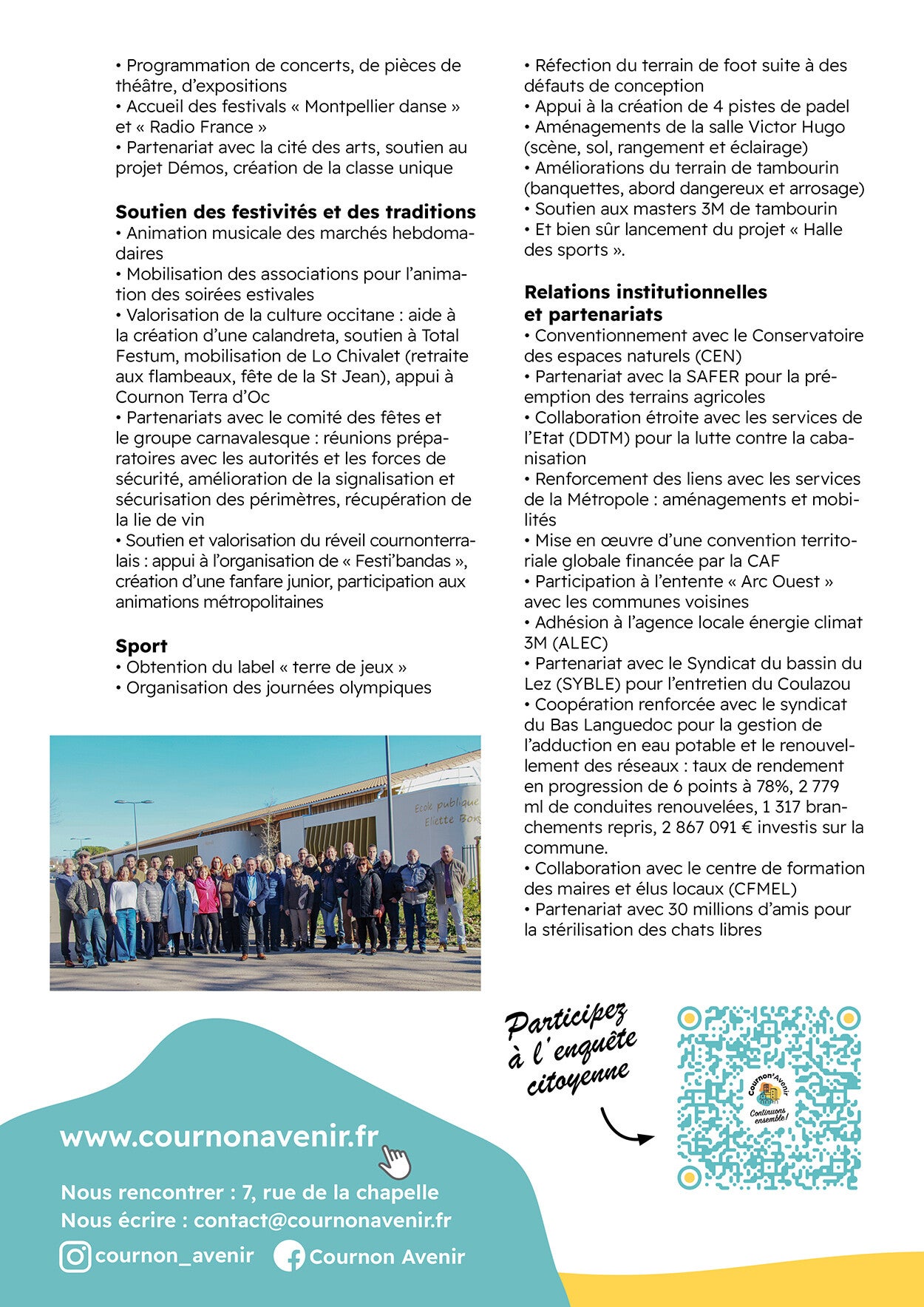 Quatre de vos élus Cournon'Avenir étaient en fonction de 2020 à 2026. Malgré un contexte compliqué, la gestion du Covid et les conflits géopolitiques de nombreuses réalisations ont jalonné ses 6 ans de mandats, nous vous invitons à les retrouver dans ces infographies.
